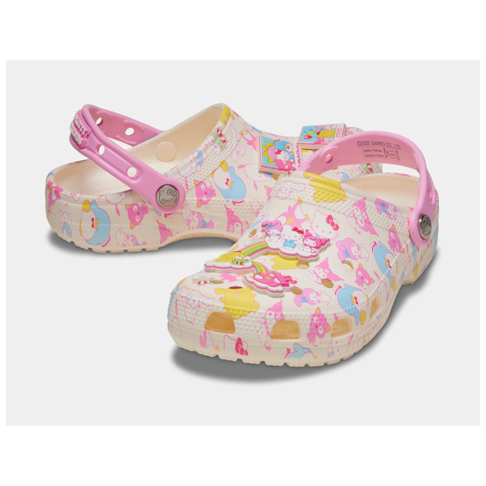 daugă un plus de culoare și veselie fiecărui pas cu saboții Crocs Hello Kitty & Friends! Acest model adorabil este inspirat de universul Sanrio și include personaje îndrăgite precum Hello Kitty și prietenii ei, într-un design jucăuș și plin de culoare.