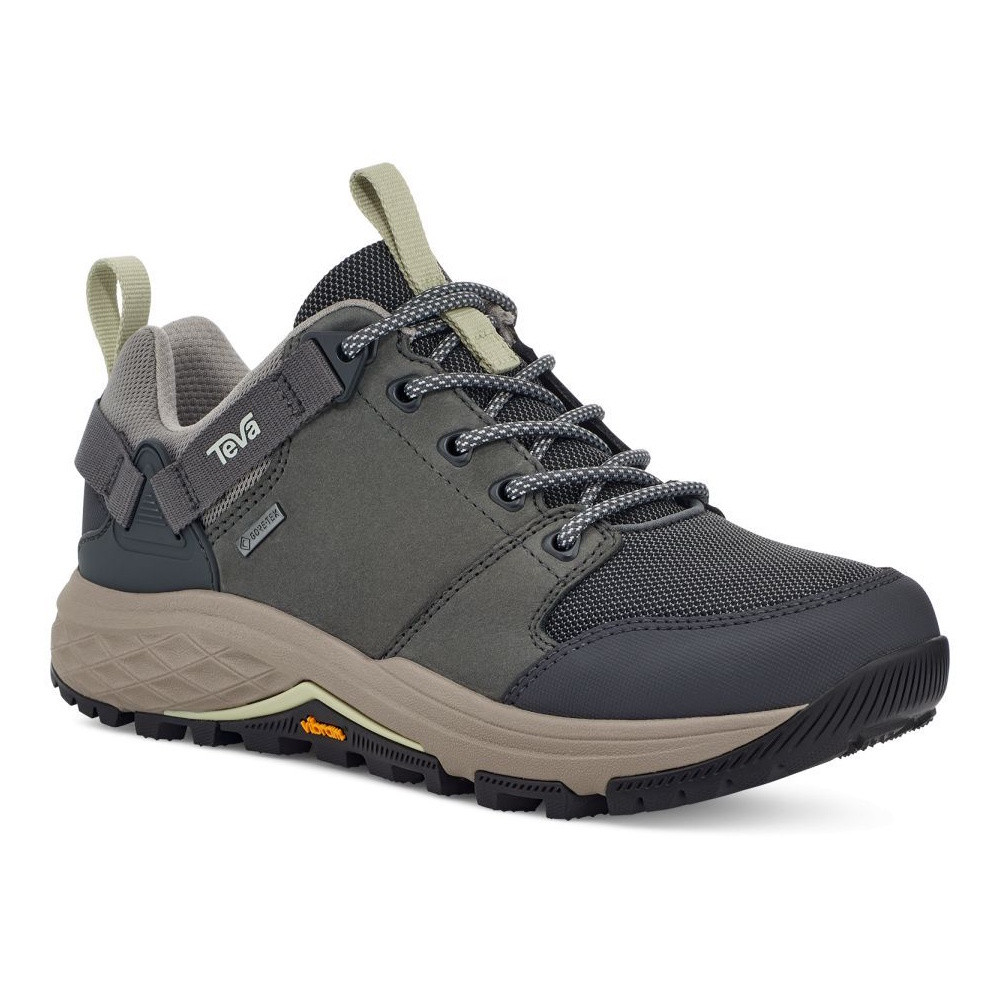 Pantofii Teva Grandview GTX Low sunt proiectați pentru drumeții și utilizare outdoor, oferind un nivel ridicat de protecție și confort. Partea superioară combină piele naturală și mesh cu uscare rapidă, asigurând durabilitate și respirabilitate optimă. Membrana Gore-Tex menține piciorul uscat, oferind în același timp ventilație eficientă în condiții variate de vreme.